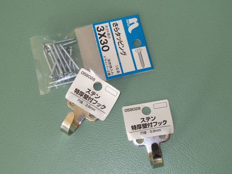 ナフコで引っかけるフックとタッピングビスを買ってきました。
