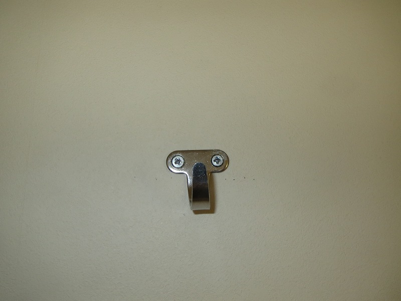 まず、左側のフックを取り付けました。軽量鉄骨にドリルで穴を開けてからタッピングビスで固定です。