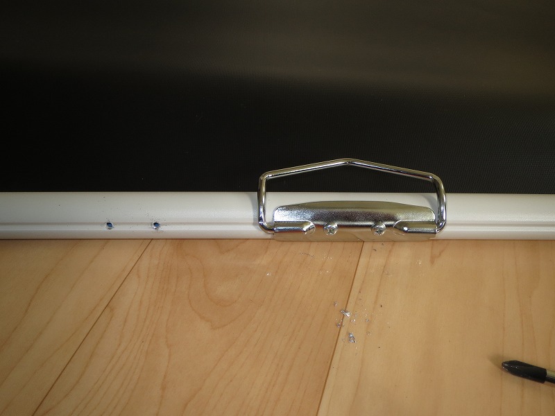 しょうがないから、スクリーンのフックを新たに穴を開けてずらしました。