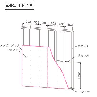 問題は、軽量鉄骨はだいたい303㎜のピッチで並んでいるそうです。ですので、右側のフックは90cmくらいのところに取り付ける必要があります。