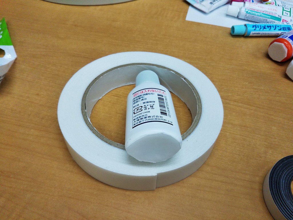 軟膏、クリームのチューブは横にして置くので、これは磁石の両面テープのみでも大丈夫そうです。