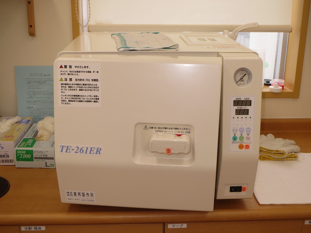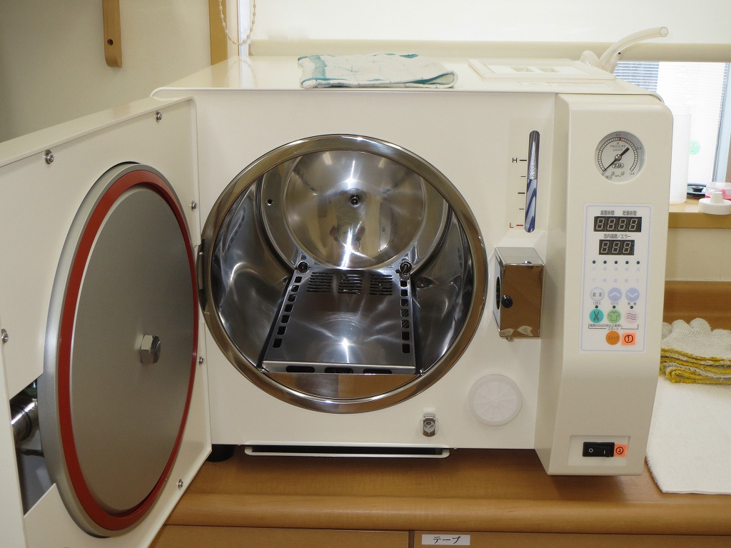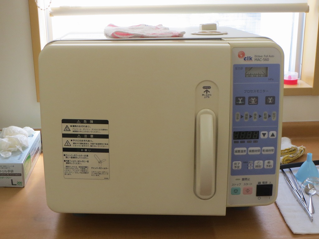 開院以来、什器の滅菌に使用していますが、数ヶ月前よりわずかに水漏れします。業者に確認してもらったところ、配管ではなく内部が腐食しているとのことで修理は不能とのことでした。多少水が漏れるだけで滅菌自体は普通にできていますが、いずれは使用不能になりそうです。新しいオートクレーブを注文しましたが、昨今の半導体不足のためか2ヶ月待ちとのことでした。ようやく8/4に搬入、設置予定です。