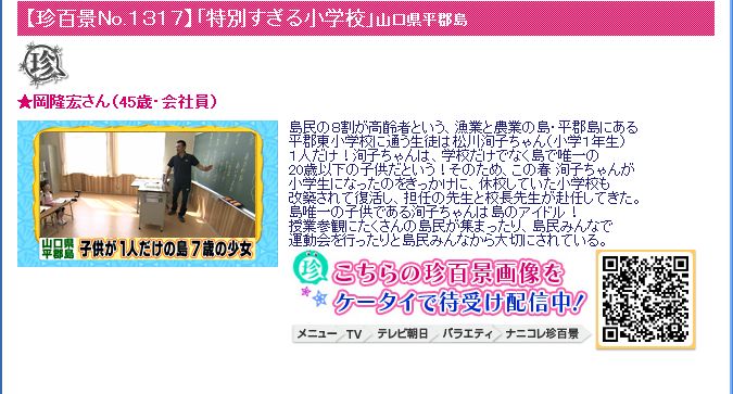 ふと、思うことがあります。 正月に実家の三次でテレビを見ていました。テレ朝でナニコレ珍百景をやっていて、山口県柳井市平郡島に9年ぶりに小学校が開校されるという内容でした。島に移住してきた家族の女の子が小学生1年生になるため、廃校を急きょ改築し校長、担任の二人を招いて小学校が再開されていました。ウド鈴木がその女の子に会いに行くという、ほほえましい内容です。 つまり、その小学校には児童はその女の子だけです。それに対し、教員が2名いるということです。 少し違和感を感じないではなかったですが、島全体で歓迎するような雰囲気でしたので概ね島民も好意的なのだろうと勝手に思いました。 先日、たまたまこの平郡島にお住まいの方と話をすることがありました。 その方曰く、柳井市はこの小学校を再会するため、1年に1500万円程度の予算を計上しているそうです。つまり、卒業までに約1億円がかかることになります。島では、消波ブロックの修理や波止の改修など本来はやって欲しいことがたくさんあるようですが、この1億円のためにその他の事業には予算が付かないといわれていました。しかも、移住した家族は島の出身者ではなくまったく別のところからこられたそうで、ずっと定住するかどうかもわからないそうです。 つまり、あまり肯定的にはとられていないという感じでした。 ものの見方は立場が変わると、大きく違いますよね。あらためてそれを感じました。 確かに、女の子には教育を受ける権利がありますが、そのために二人の教員が単身赴任で来られるとなると、犠牲も大きいですよね。だって、その教員にも家族があるはずですから。それなら、女の子が本州に住む方が合理的とも思います。もともとの島民ならやむを得ないのでしょうが、そうでないだけに複雑ですね。 税金というものはやはり平等感があって初めて成り立つものです。したがって、どこかに偏るとどうしても不満が残ります。平郡島の話は分配についてですが、負担についても一緒ですね。 そういう意味では、所得税を払わないお年寄りや低所得者からも薄く課税する消費税アップはやはり必要と思うのですが…。民主党はきらいですが、野田前総理の功績を現自民政権は無駄にしないようにして欲しいです。