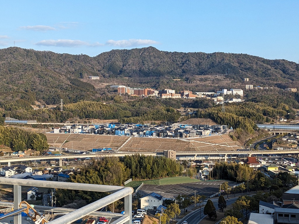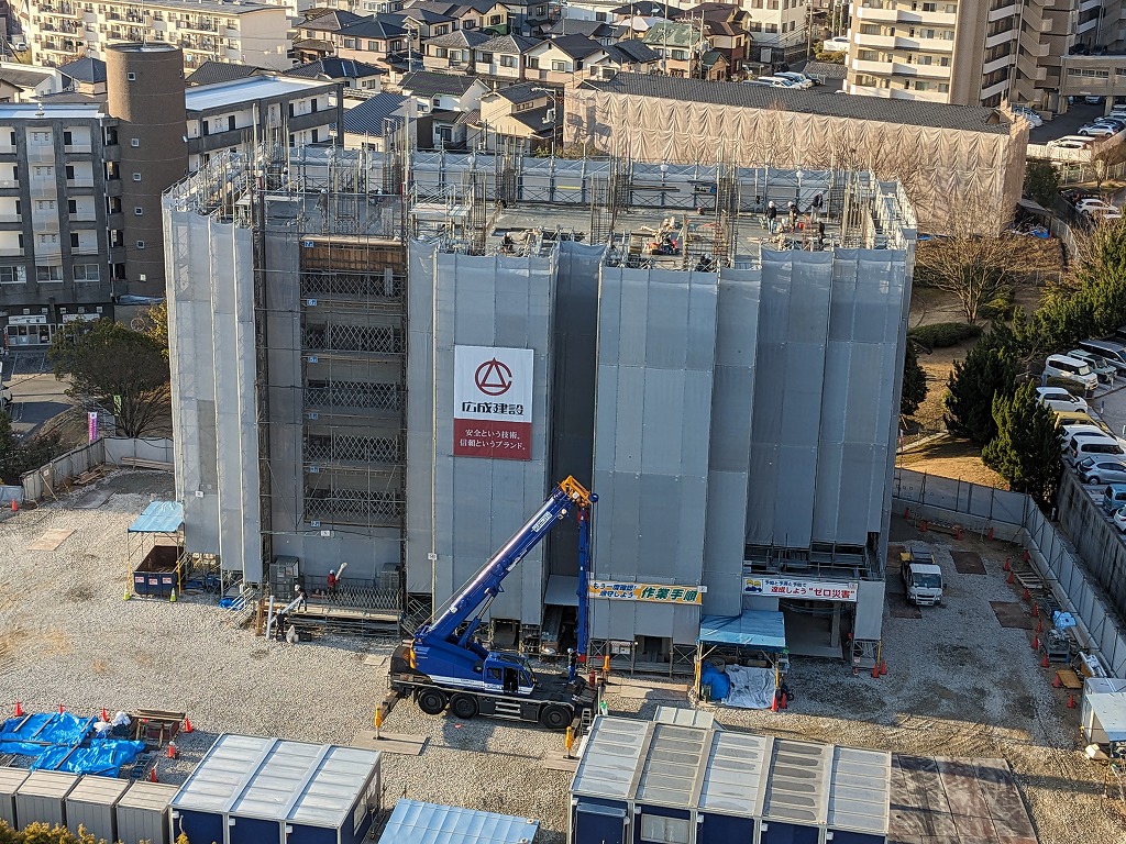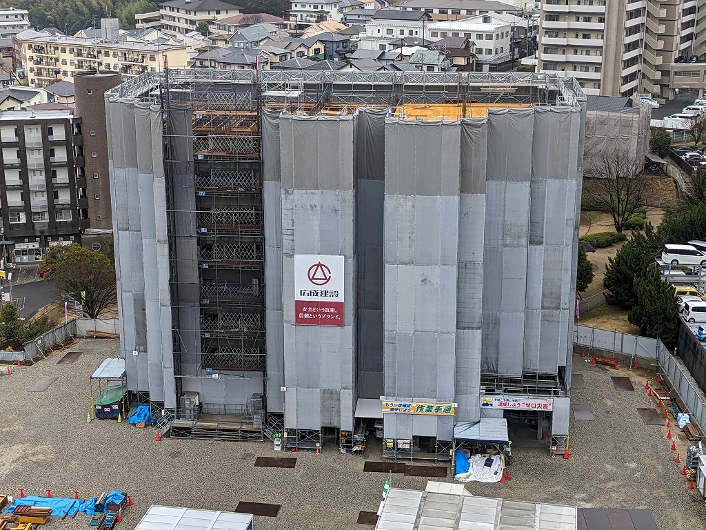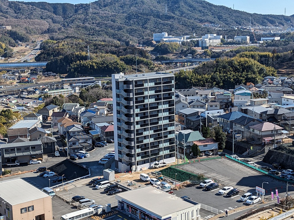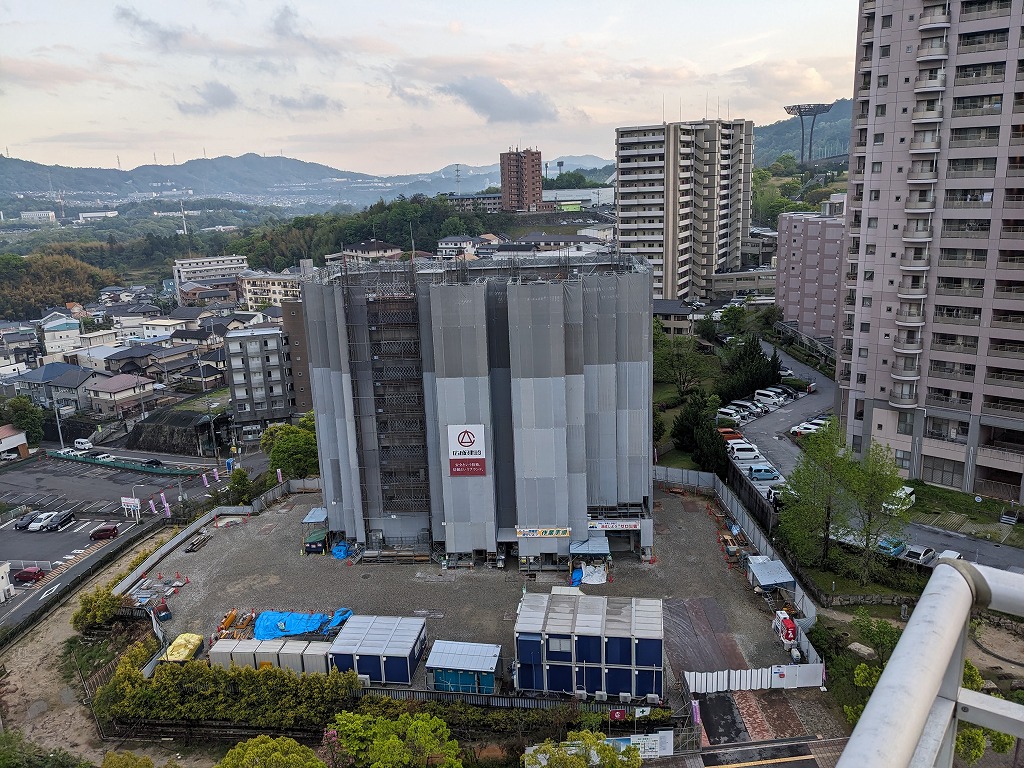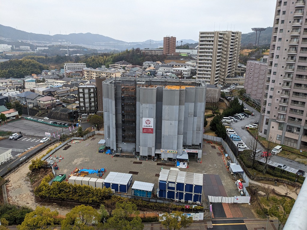 中央にソシオマンションが見えます。外観上は概ね完成したようですね。