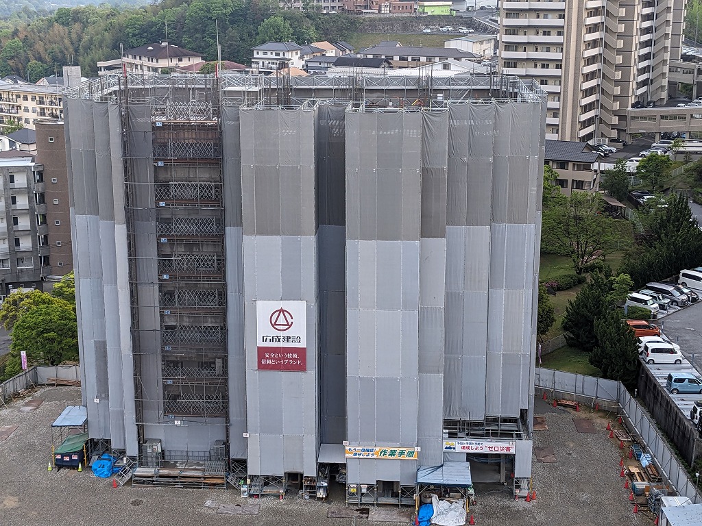 9階の床を工事中のようです。15階建てみたいなので、60%ができたようですね。